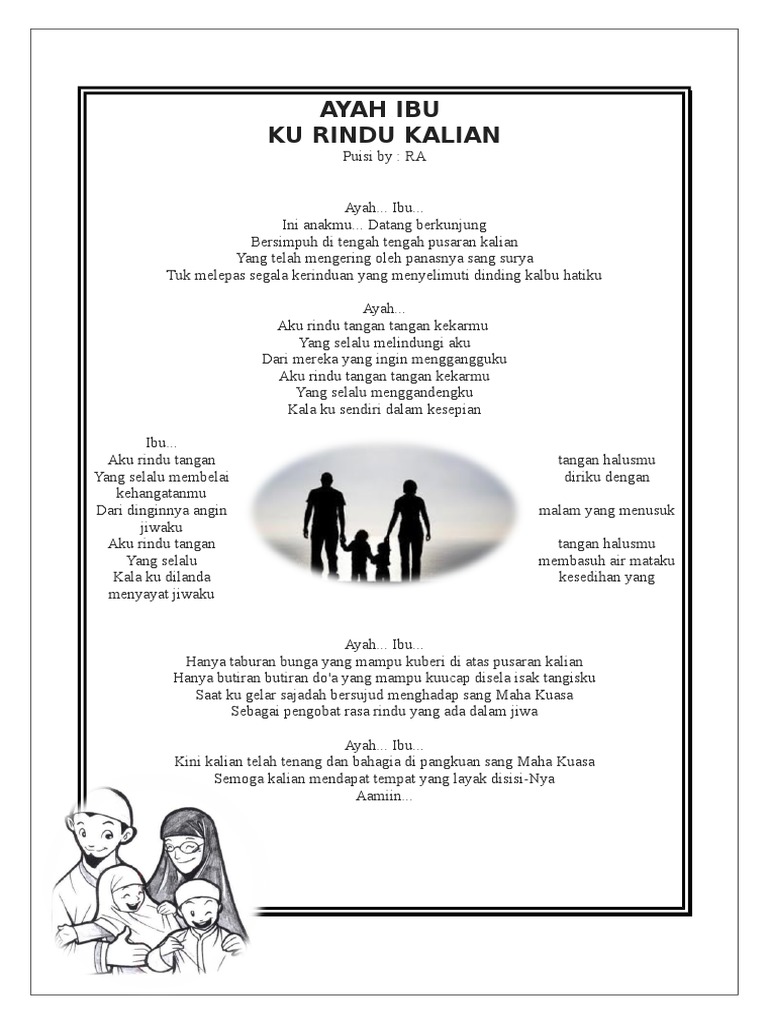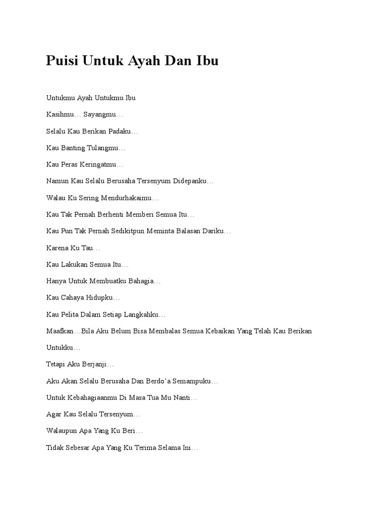 Yang bertunas dari kemesraan hujan dan. Puisi ibu dan ayah yang menyentuh hati pendek. Rela bekerja keras untuk menyekolahkan anaknya dan sebagai pemimpin keluarga yang siap berkorban jiwa.