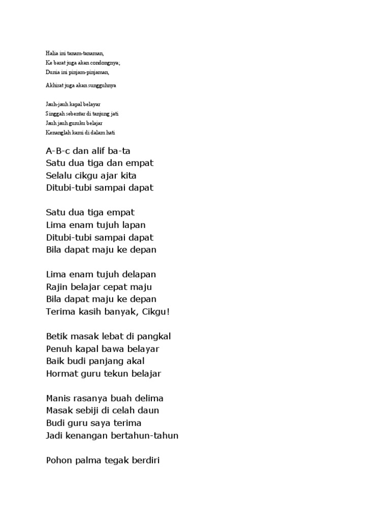 Setiap pagi kau berikan senyum hangat untuk kami Kau ajarkan kami sedikit demi sedikit hingga kami mengerti Guruku begitu besar perjuanganmu untuk kami Kami tidak tau bagaimana membalas segala perjuanganmu. 7 talking about this. Ketika aku kecil dan menjadi muridnya.