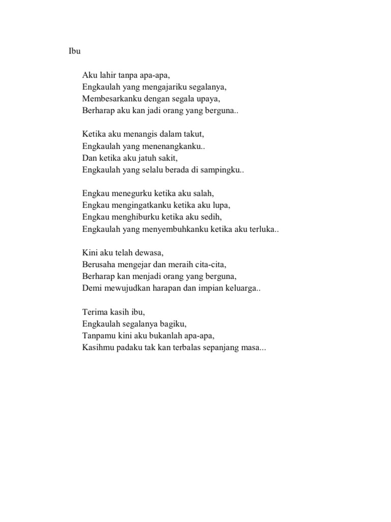 Ada yang tahu lagunya. Puisi tentang ibu juga bisa kamu jadikan doa agar ibu selalu dinaungi kebaikan dan diberikan kesehatan. PUISI cinta di jari manismu.