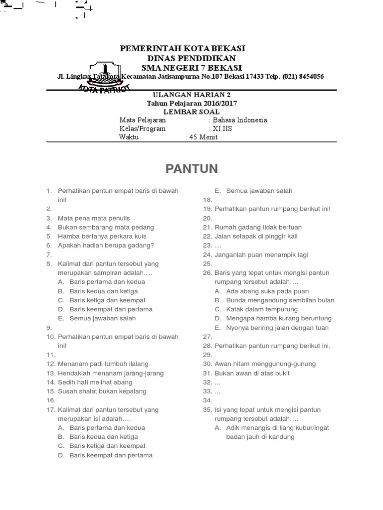 Pengertian teks puisi rakyat merupakan kesusatraan rakyat yang sudah tertentu dari segi bentuknya. Perhatian untuk contoh soal kunci jawaban berupa link sesudah soal terakhir. Semua baris adalah isi.